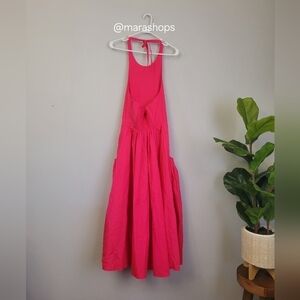 The dramatic proportions of this midi create a sculptural feel. Designed with a classic racer body, it's made from lightweight cotton and nips in at the waist before flaring out to a voluminous skirt with deep pocketing at the front. Wear it with chunky sandals.