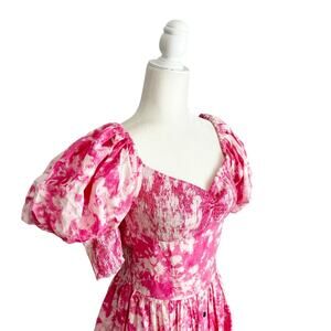 swf dress, pink midi dress, puff sleeve dress, cotton midi, resort wear, summer fashion, vacation dress, feminine style, tie dye dress, designer day dress, D0