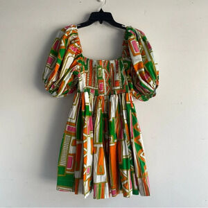 S/W/F SWF Puff Sleeve Babydoll Dress green white orange 22345