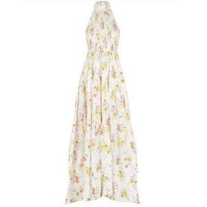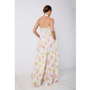 S/W/F Shirred Floral Print Halter Sleeveless Tiered Garden Party Maxi Dress SWF