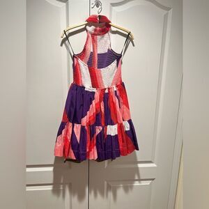 SWF Mini Dress Shirred Halterneck Graphic Print Size Small Preowned