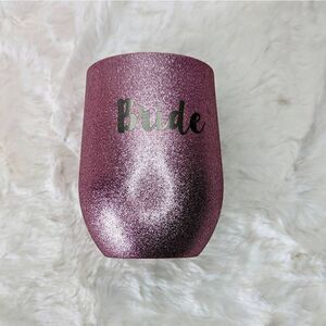 Glittery pink BRIDE aluminum insulated wine tumbler by Swig