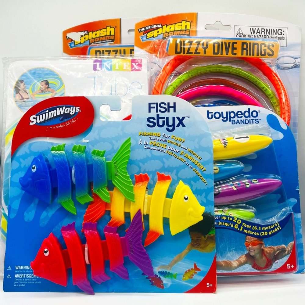 (1) Swimways Toypedo Bandits 4 pk- multicolored that glide underwater up to 20 ft, ages 5+ yrs