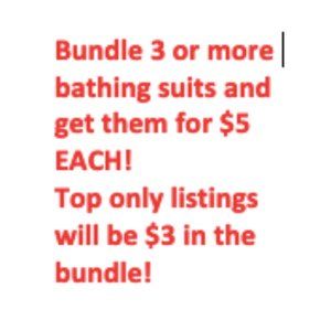 Bundle at least 3 swim suits and/or swim tops and get the sets for $5 EACH and the top only listings will be $3. I will offer the discount once I see 3 items in your bundle and ask if that is all you are wanting :) Can ship next day!
