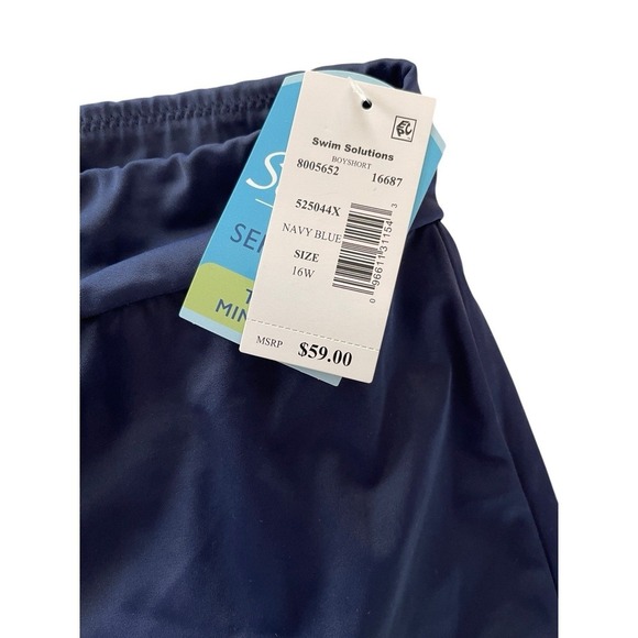 SWIM SOLUTIONS Womens Swim Shorts Navy Blue Plus Size 16W NWT $59