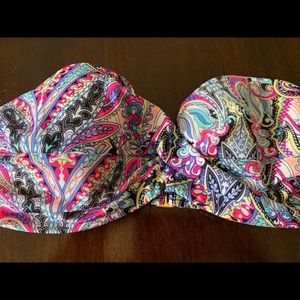 This is a cute bandeau from Victoria’s Secret. It has a cute paisley pattern on it that gives a good summer vibe to it. It has just been sitting at the bottom of my drawer, so it’s in like new condition. It also has a straps you can attach to it. It would be so cute paired with either black or teal bottoms.