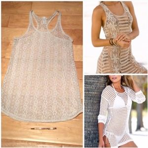 UNIQUE STYLES BOUTIQUE - Cream tan beige ivory colored fishnet see-through bikini or pool cover up, lace sheer mini dress. small 16" x 32" inch. Very BoHo chic hippie love gypsy tribal simple forever 21 rue Charlette Russe wet seal free style Maurices H&M urban outfitters nasty gal American Mily Cyrus Selena natural beach bunny islander southern amber chic jen kelly Lisa baby lady Jennifer little mini cute darling fashion nova style. ** More Styles go to "brand" under "Unique Styles dresses"