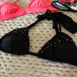 1. Black Ripcurl Macrame Top- size small- $12- never been worn- fringe tie- pads included