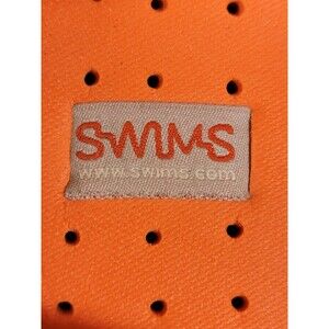 Branding: SWIMS embossed on strap and heel; SWIMS logos on insole and outsole
