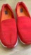 These red penny loafer made by swims are waterproof. They are lightly used. Some normal signs of wear mostly seen on the back of the shoe. The red is very clean as are the white base of shoe and bottom of shoe