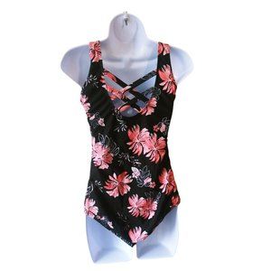 - ⛱️SWIMSUIT ONE PIECE BLACK WITH FLORAL DESIGN NWOT