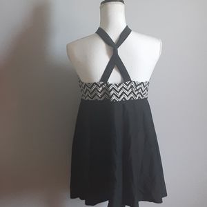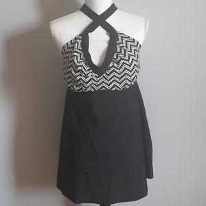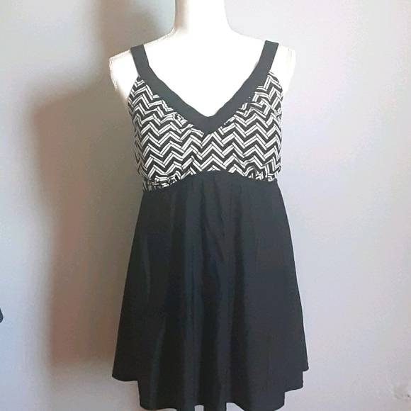 ONE PIECE SWIMSUIT NEW CONDITION, SKIRT MEASURES 18 INCHES FROM UNDER BUST DOWN TO BOTTOM. FROM SWIMSUITS FOR ALL