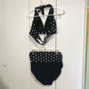 SWIMSUITS FOR ALL Black with White Polka Dot Bikini Womens 12