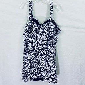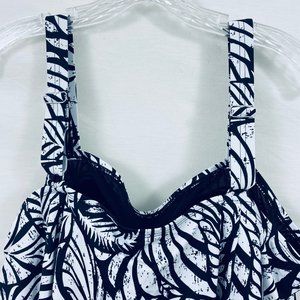 SWIMSUITS FOR ALL Leaf Print Princess Seams One Piece 28 Black White NEW