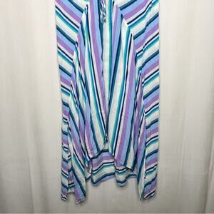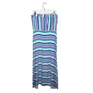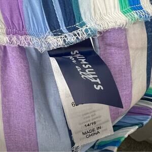 SWIMSUITS FOR ALL / Riley blue purple striped strapless swim cover up dress / 14