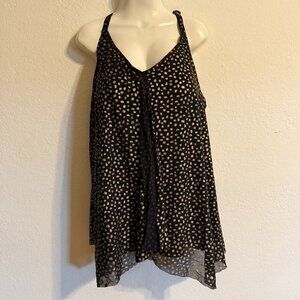 This sleeveless polka dot chiffon top combines style and functionality. Its lightweight fabric ensures comfort, while the built-in bra provides added support. The crossback design adds a modern flair, making it a practical yet chic choice for various settings.