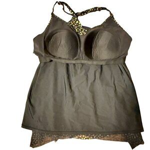 SWIMSUITS FOR ALL Sleeveless Crossback Top With Built-In Bra Gold Black