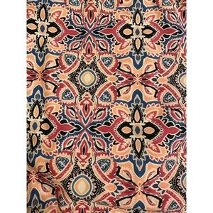 Pretty print with black, blue, terra cotta, white, peach