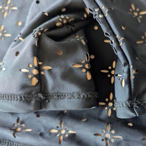 SWIMZIP Small Black Scallop Neck Laser Cut Rash Guard UPF 50+