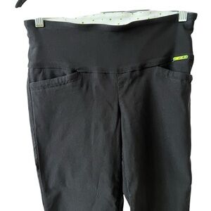 Solid black, womens size 4, pull on, legging type pant, stretchy, cropped capri length, non-functioning stud detail at cuffs.