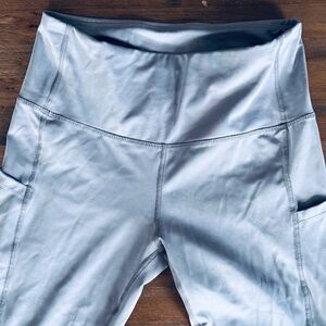 Stylish high-waisted leggings in light blue. Features a convenient side pocket.