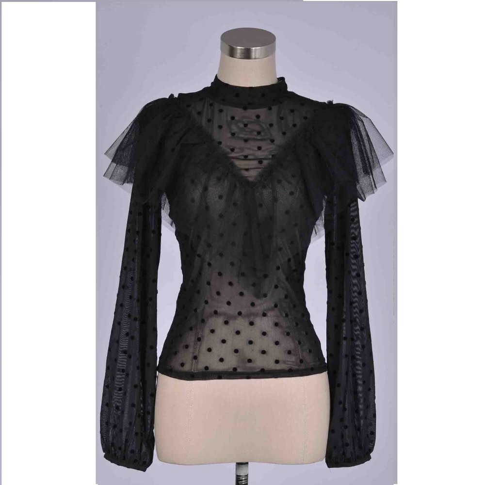ZARA STYLE SWISS DOT MESH RUFFLE TOP WITH BACK BUTTON
