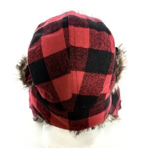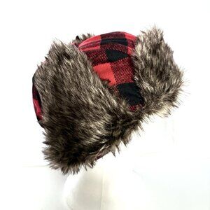 SWISS TECH Baltic Trapper Hat Winter Cap Red Buffalo Plaid Faux Sherpa Lined OS