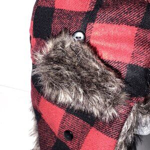 SWISS TECH Baltic Trapper Hat Winter Cap Red Buffalo Plaid Faux Sherpa Lined