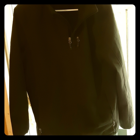 Black men's swiss tech jacket, minimal use still has new quality. Water resistant, soft, warm and stylish!