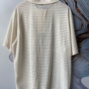 Elegant beige knit polo shirt with a unique texture. Ideal for a stylish, casual look.