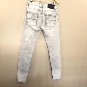SWITCH Remarkable JEANS MEN'S 30 Acid Washed RIPPED Slim Taper PATCHES Hallyu