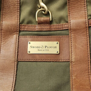 Sword & Plough green mini zip top tote bag currently sold out online! Zippered top to keep all of your belongings safe. Durable and water-resistant material. Full grain leather straps. 2 exterior side pockets, 3 interior camo patterned pockets, and a D ring for securing keys or wallet. Perfect as a laptop bag, diaper bag, or airplane carry on! Dimensions not including straps: 12 height x 5 width x 13 length. Strap drop length 12”. Great condition overall! #swordandplough #totebag #minitote #greentote #militarystyle