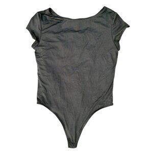 SWS Contour Boat Neck Cap Sleeve Bodysuit L Solid Black Thong Smoothing