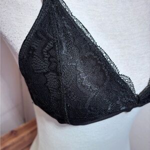SWS Essentials Lace Bra. Size XL. Padded cups. Adjustable straps. Black lace. Triangle lace back detail. Nylon/ spandex.