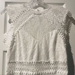 Round Neck, Cut Out, Zipper Closure |Fitted | Guipure Lace Mesh, Embroidered Eyelet, Above Knee Length | New- Never used no rips, no stains - No Tags