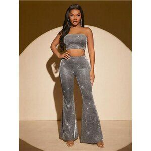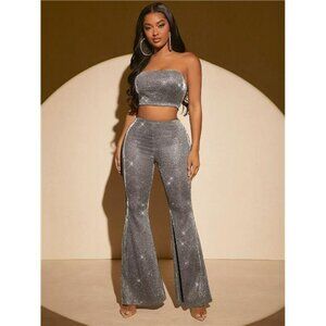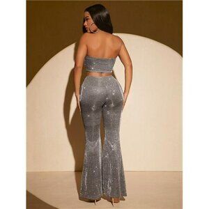 SXY Glitter Crop Tube Top & Flare Leg Pants
