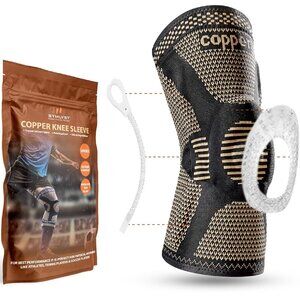 SYMLYST Copper Knee Brace Compression Sleeve with Side Spring Stabilizer
