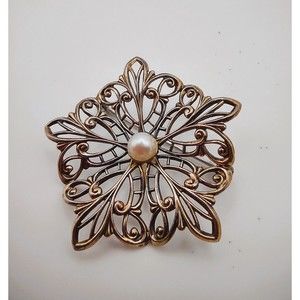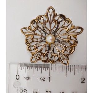 SYMMETALIC ART DECO BROOCH w/ Pearl Marked Sterling 1/20 14k (14k Gold Overlay)