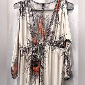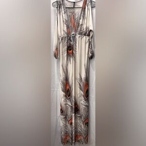 SYMPHONY Peacock Feather Print Maxi Dress Size M