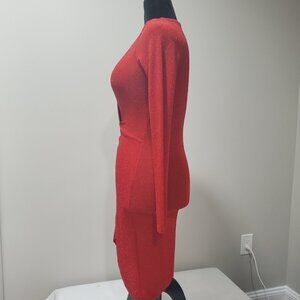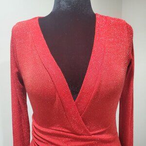 SYMPHONY RED GLITTER GLAMOROUS COCKTAIL WRAP DRESS SIZE M