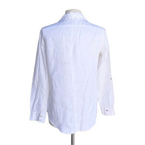 SYMPLE NYC Women’s Size M Off-White Linen Roll-tab Sleeve Button Pocketed Shirt