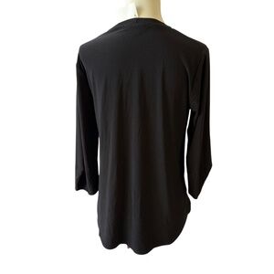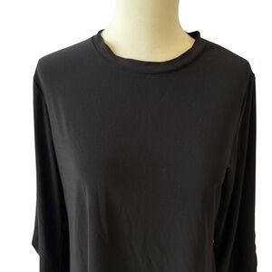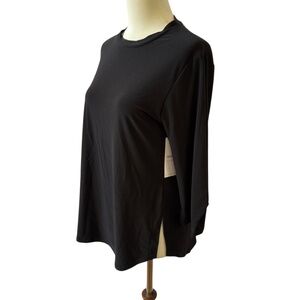 Size 6, black, stretch jersey, pull on, crewneck, 3/4 sleeves, side slits. Goes well with the NWT Sympli straight leg pants I have for sale. Bundle and Save.