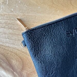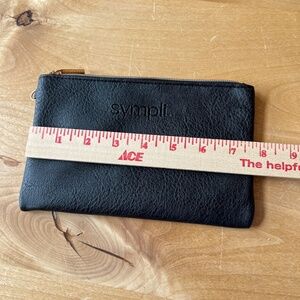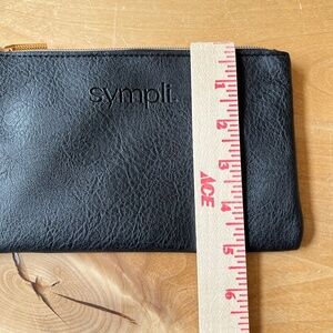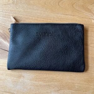 SYMPLI LEATHER POUCH BLACK ZIP TOP COMPACT TRAVEL VACATION OFFICE CASUAL CHIC