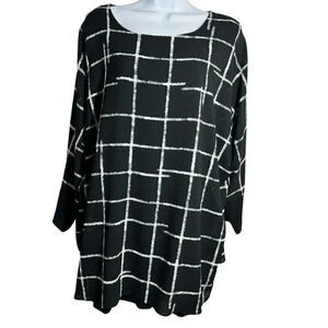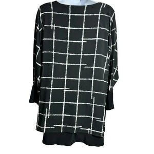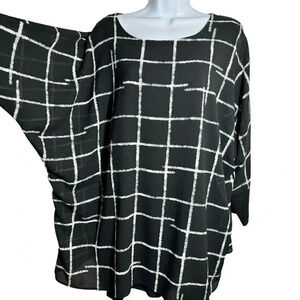 SYMPLI black & white semi-sheer Georgette tunic top dolman sleeve size 14