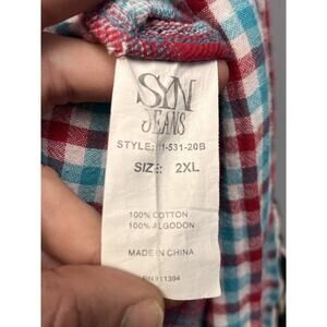 SYN Jeans Button front shirt Mens 2XL Plaid Pockets Casual Roll Tab sleeves