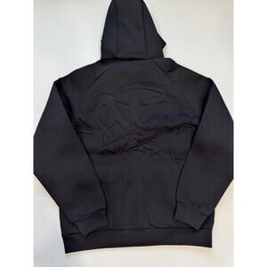 A stylish black hoodie by Syna World, featuring a central Cee logo accent. Made of cotton fleece fabric, the hoodie has a drawstring closure, long sleeves, and a hood. Designed for unisex adults in size M, it is machine washable and has a regular fit. Ideal for streetwear and hip hop styles, this heavyweight hoodie is perfect for winter, fall, and spring seasons. Great for activities like gym training, skateboarding, and hiking.
