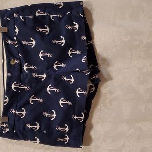 SZ. 6 J.CREW NAUTICAL RED WHITE AND BLUE ANCHORS ⚓️ MID-RIZE FLAT FRONT …