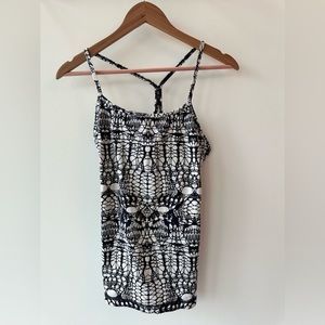 SZ. 6 LULULEMON POWER Y TANK WHITE BLACK GLACIER LACE