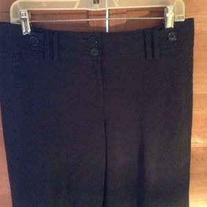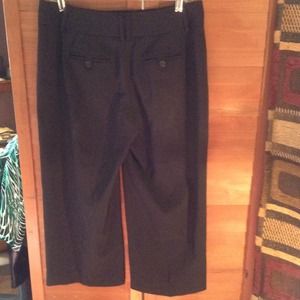 Cute crop leg black pants, in a generous SZ 6 **could fit SZ 8*** . Poly, viscose , spandex blend. There is some wear below where the knee would fall on both legs(see pic 3) but can't really notice when being worn.
