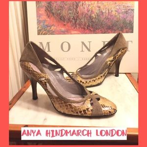 SZ 7-ANYA HINDMARCH LONDON LEATHER SNAKESKIN PUMPS